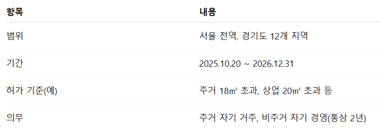 ※ 효력: 토지거래허가구역은 2025.10.20~2026.12.31 적용, 필요 시 연장 검토(발표문 기준)