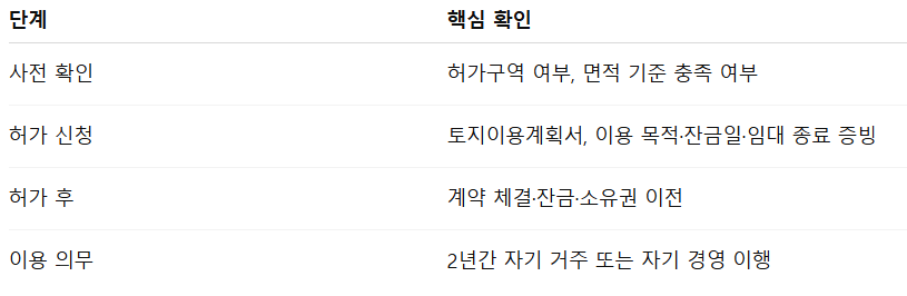 신청 시 토지이용계획서에 이용 목적과 잔금일, 임대차 만료 예정 등을 구체적으로 기재하고,