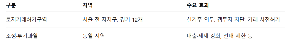 내용: 토지거래허가구역 지정 + 조정대상지역·투기과열지구 지정