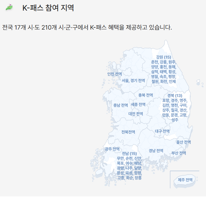 - 카드 준비: K-패스 호환 교통카드(실물) 또는 모바일 교통카드 준비합니다.